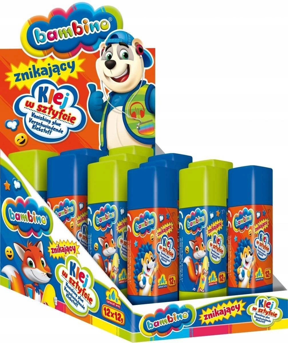 12x Klej ZNIKAJĄCY W Sztyfcie Szkolny Biurowy Mocny Fioletowy 12g Bambino