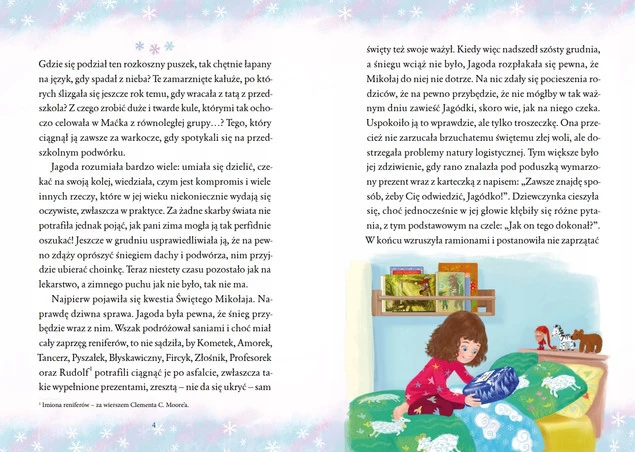 Jagódka z utęsknieniem czekała, aż biały puszek przemieni świat w śnieżną krainę. Śnieżynki wprawdzie nie przyjęły jej zaproszenia, za to wysłały babcię Wandzię. Jak obsypać szczęściem nawet zakątki bez bieli? I dlaczego babcine pomysły mają tyle mocy, co największe czary?