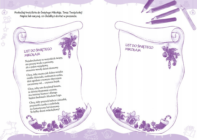 Śnieżne kolorowanki, zgadywanki, ozdabianki i rysowanki. Nastrojowe wierszyki znanej krakowskiej poetki Ewy Stadtmüller. Naklejki dodające uciech.