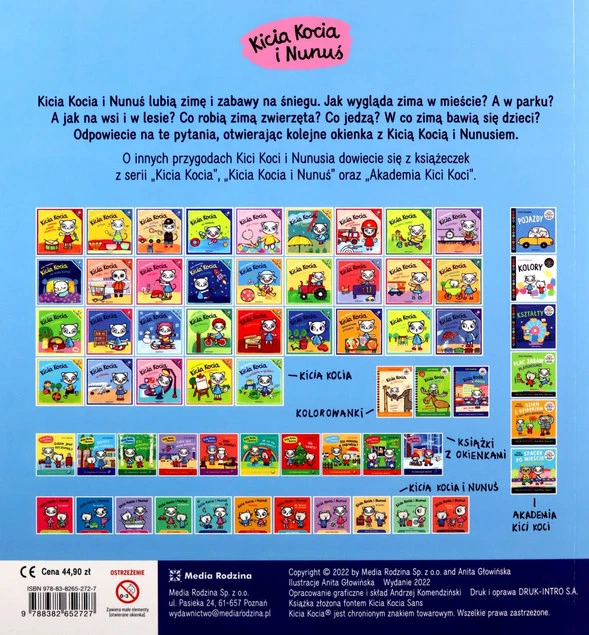Kicia Kocia i Nunuś. Jaka piękna zima! to kolejna książka kartonowa z otwieranymi okienkami w serii o Kici Koci autorstwa Anity Głowińskiej.