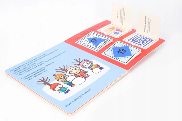 Kicia Kocia i Nunuś. Czekamy na święta! jest kolejną pozycją, dzięki której mali czytelnicy mogą odkrywać przygody Kici Koci oraz jej braciszka. Tajemnice ukryte w 24 otwieranych okienkach spowodują, że czas z książeczką będzie dla najmłodszych wspaniałą zabawą – umili im także oczekiwanie na święta Bożego Narodzenia!