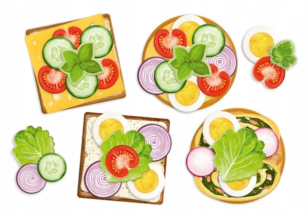 Kreatywna zabawa, rodzaj układanki, która umożliwia dzieciom tworzenie smacznych i zdrowych kanapek.