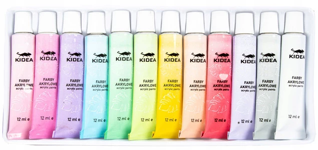 Farby Akrylowe PASTELOWE 12 Sztuk x 12ml Kidea