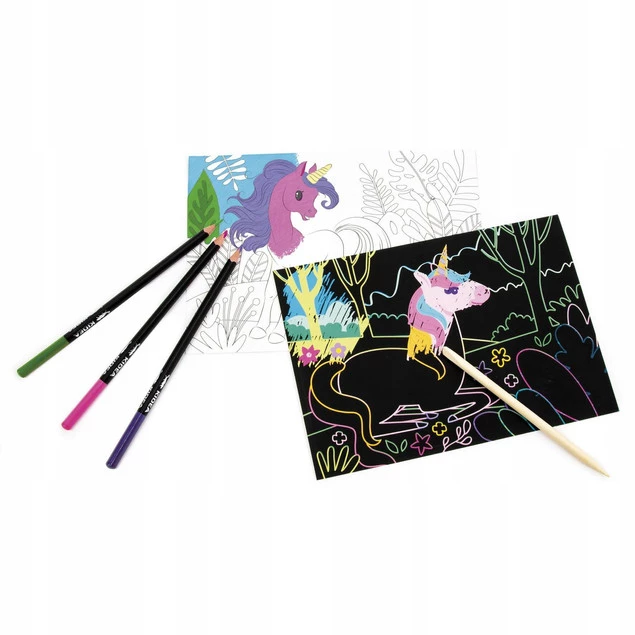 Złóż zapytanie o cenę hurtową produktu |Wydrapywanka Zdrapywanka Kolorowanka JEDNOROŻCE 6 Arkuszy + Rysik Kidea