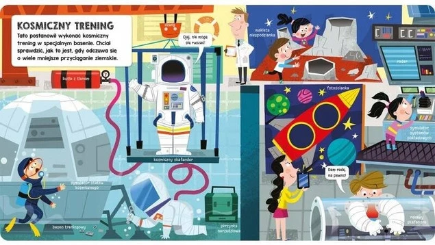 Z książką „Kosmos” dzieci poznają nazwy różnorodnych statków kosmicznych, zwiedzą centrum badawcze oraz stację kosmiczną od środka. Zobaczą kosmiczny trening i w prosty sposób dowiedzą się więcej o technologii kosmicznej oraz historii podboju kosmosu. Książeczki z okienkami otwierają dziecięce umysły na świat. Polecamy je wszystkim maluchom!