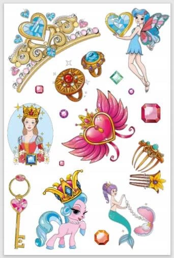W środku: projekty do kolorowania i zestaw zmywalnych tatuaży (wzory kolorystyczne).