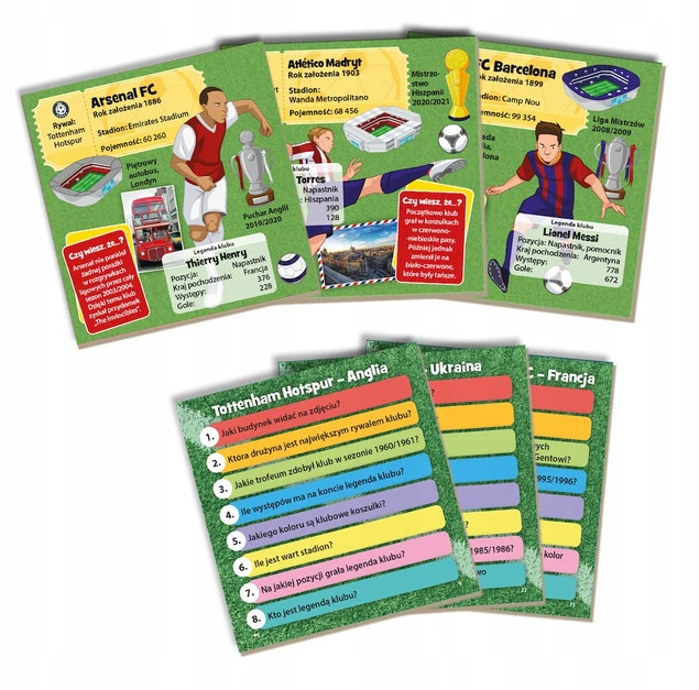 BrainBox - Piłka nożna to nie lada wyzwanie dla wszystkich fanów futbolu. Na 55 kartach znajdziesz 440 pytań dotyczących słynnych klubów piłkarskich i najpopularniejszych piłkarzy z całego świata. Za pomocą wspaniałych ilustracji i zabawnych ciekawostek, gra przybliża sylwetki najznamienitszych zawodników z najwyższych europejskich lig, drużyn z Ameryki Południowej, a nawet dalszych zakątków globu.