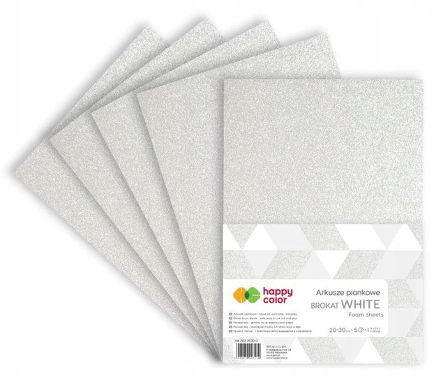 Arkusze Piankowe BROKATOWE Brokat A4 Białe 5 Arkuszy Pianka Happy Color