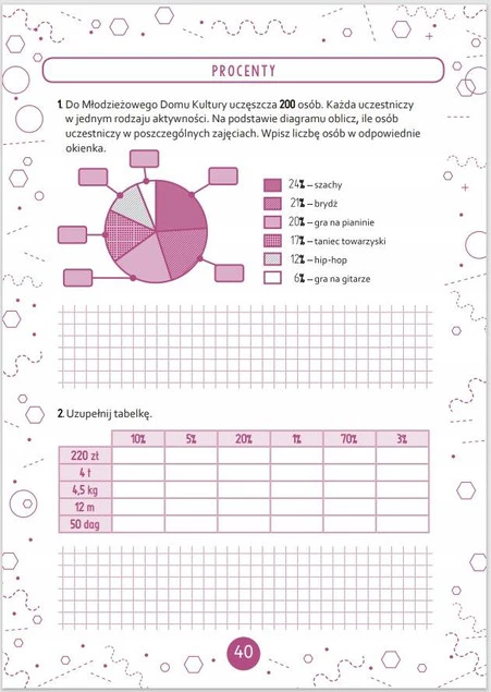 Szeroki zestaw ćwiczeń opracowano zgodnie z podstawą programową i ułożono według zasady stopniowania trudności. Zadania dobrano tak, aby kłaść w nich nacisk na praktyczne zastosowanie przerabianych treści.