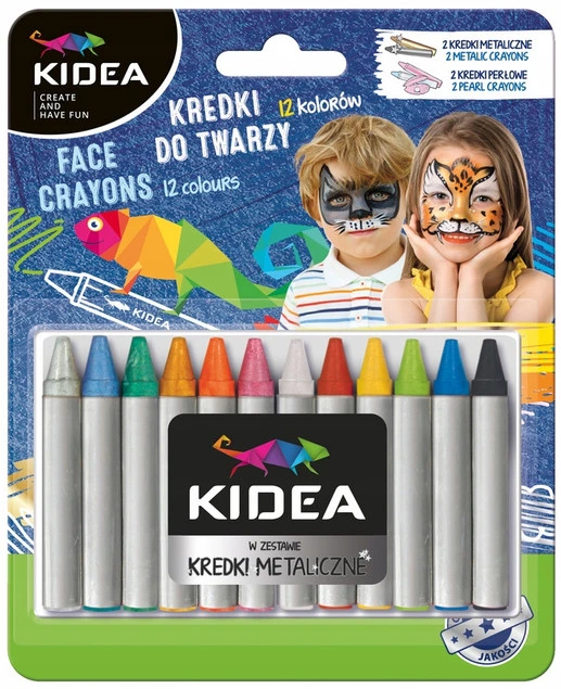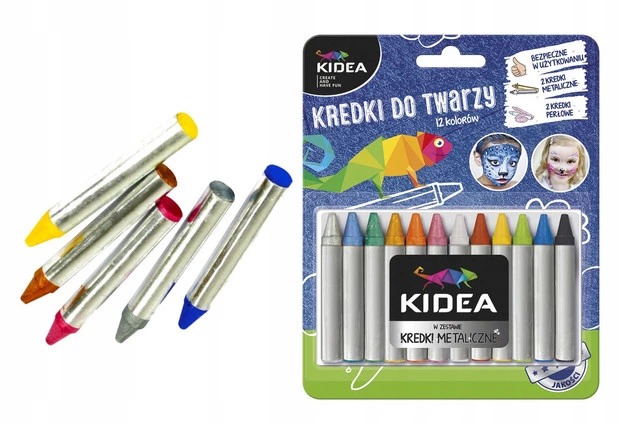 ![]() | Zestaw składa się z 12 miękkich kredek o intensywnych kolorach. Są one bezpieczne w użytkowaniu co potwierdziły restrykcyjne testy dermatologiczne. Bardzo łatwo jest nimi rysować po skórze, dzięki czemu można tworzyć niezwykle kreatywne rysunki na twarzy. Łatwo zmywalne przy użyciu wody i mydła, pozostałości można usunąć przy użyciu płynu do demakijażu. Kredki posiadają intensywne kolory, są miękkie dzięki czemu bardzo łatwo jest nimi rysować po skórze.