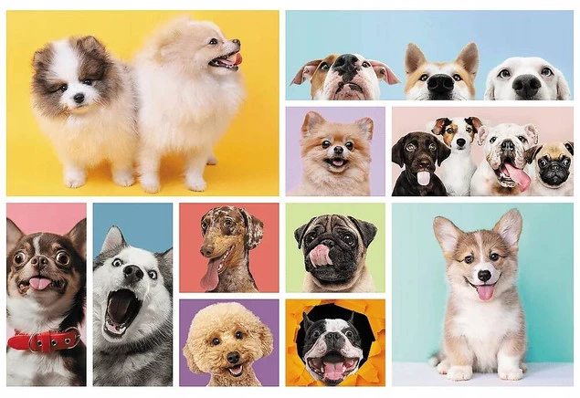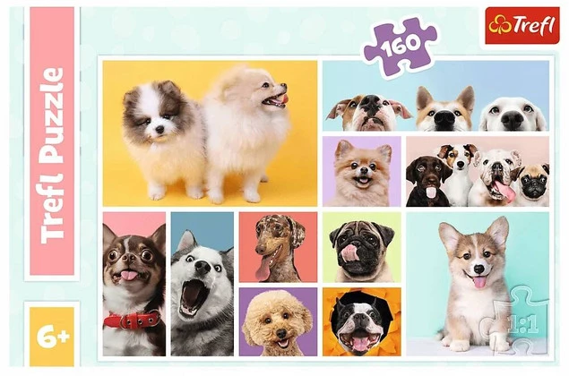 Wyjątkowe puzzle dla dzieci przedstawiają psią przyjaźń, czyli urocze pieski pozujące razem. Zestaw puzzli składa się ze 160 elementów i pozwala ułożyć kolorowy obrazek o wymiarach 410x278 mm.