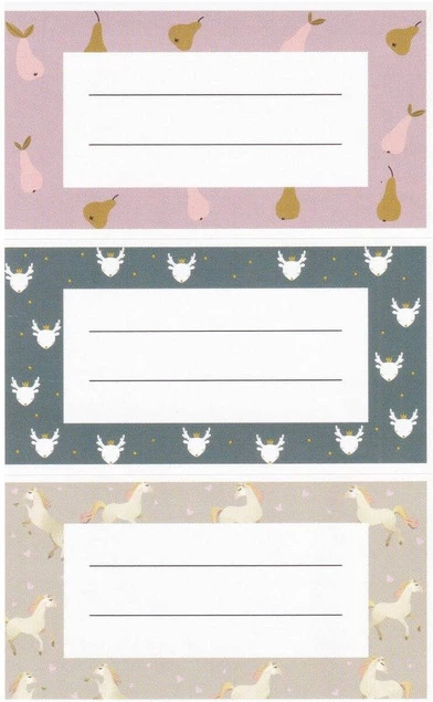 Zestaw kolorowych naklejek na zeszyty z uroczymi motywami.