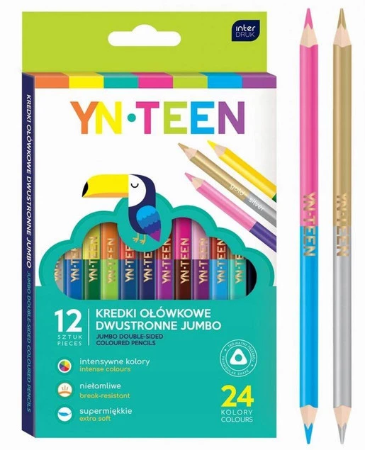 Kredki OŁÓWKOWE Trójkątne Dwustronne JUMBO 12=24 Kolory Interdruk