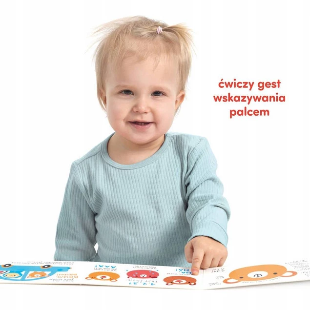 • Obrazkowa książeczka jest pełna pomysłów na zabawy, które pozwalają ćwiczyć gest wskazywania palcem.