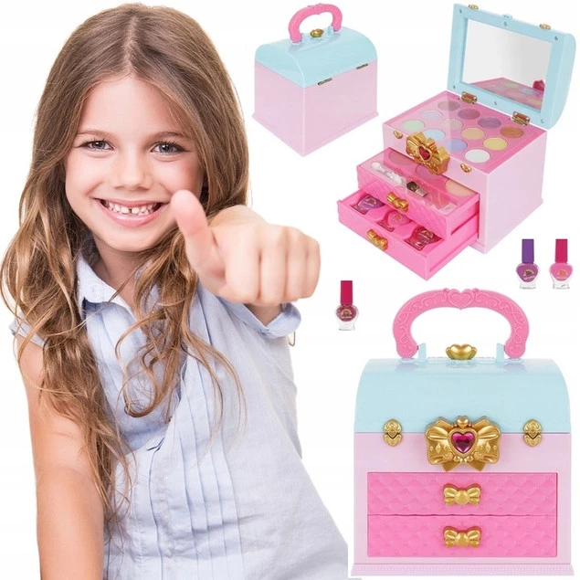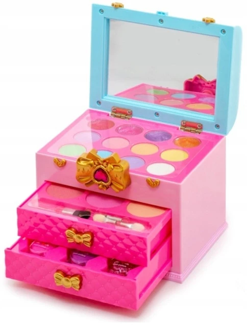 - Zamykany kuferek kosmetyków Norimpex z lusterkiem – cienie, lakiery, błyszczyki i puder. Bezpieczny zestaw do makijażu dla dziewczynki 3+, idealny prezent małej damy.