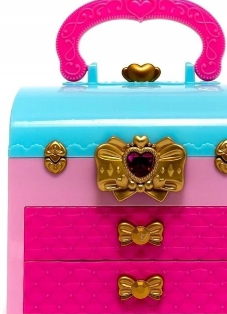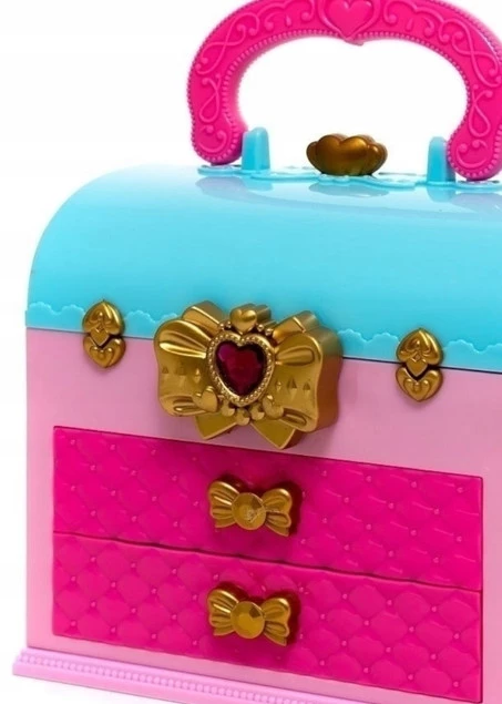Kuferek posiada wbudowane duże bezpieczne lusterko, w którym dziewczynka bez problemu się przejrzy i oceni wykonany makijaż.