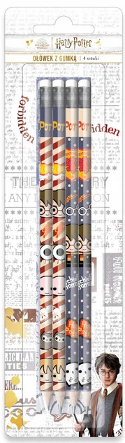 4x Ołówek Szkolny Z Gumką HARRY POTTER 4 szt HB Beniamin