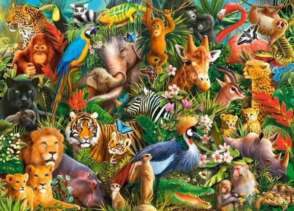 Puzzle 180 Układanka Dzikie ZWIERZĘTA Dżungla Lwy Małpy Obraz 7+ Castorland
