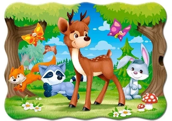 30 elementowa układanka przedstawiające jelonka z przyjaciółmi. Starannie dobrane wzornictwo, doskonała jakość oraz cenne walory dydaktyczno-wychowawcze to niewątpliwe atuty puzzli klasycznych, dzięki którym marka Castorland jest znana i ceniona w ponad 40 krajach. Puzzle dedykowane dzieciom powyżej 4 roku życia.