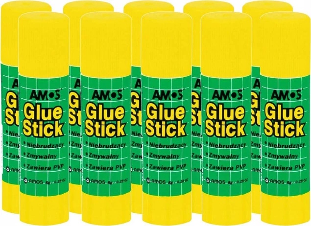 10x Klej W Sztyfcie Szkolny Bardzo Mocny Wytrzymały 8g Amos