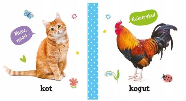 Maluchy z przyjemnością oglądają fotografie zwierząt, poznają ich nazwy i próbują naśladować odgłosy. Kartonowe książeczki z zaokrąglonymi rogami doskonale pasują do małych rączek. Idealna lektura do biblioteczki malucha.