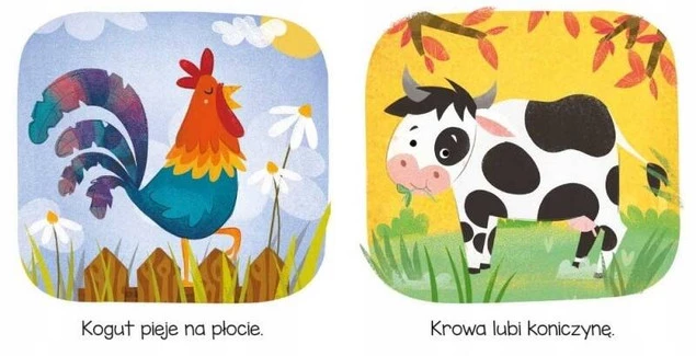Książeczka dla małych rączek, a w niej spotkanie z sympatycznymi zwierzątkami – mieszkańcami wiejskiej zagrody. Pięknie zilustrowana i bezpieczna w użytkowaniu. Doskonała lektura do biblioteczki malucha.