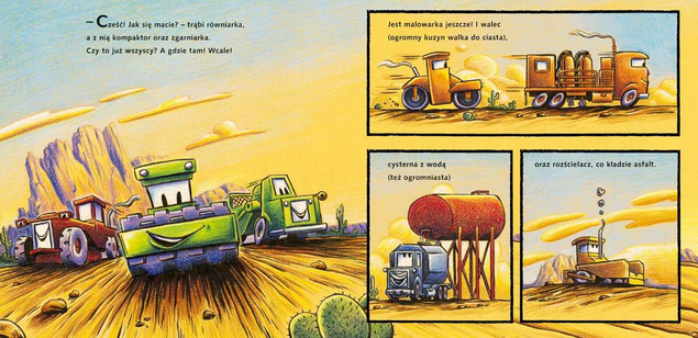 Kontynuacja książeczki na dobranoc, którą pokochały dzieci na całym świecie! Dziś przed autami wielkie wyzwanie: budowa autostrady. Ale szóstka przyjaciół – od ogromnego dźwigu aż po tycią mini ładowarkę Brumkę – żadnej pracy się nie boi! Tym bardziej że ma do pomocy siedem zupełnie nowych maszyn – takich jak cysterna z wodą czy rozściełacz asfaltu. A więc bez obaw: droga zostanie ukończona przed wieczorem i wszyscy dojadą nią bezpiecznie do swoich łóżek…