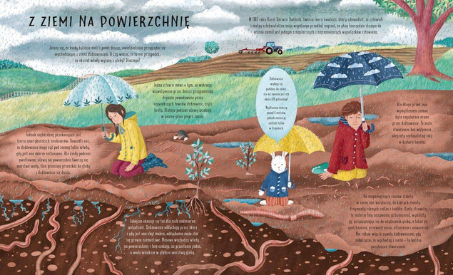 Kiedy moja córeczka była mała, bardzo bała się burzy. Postanowiłam więc, że kiedyś jej wyjaśnię, dlaczego pada deszcz, jak powstają pioruny i czy można się przed nimi uchronić oraz skąd się bierze tęcza. Chciałam, żeby zrozumiała zachodzące w przyrodzie zjawiska i przestała się ich lękać. Dziś mogę z dumą powiedzieć, że Ania z radością biega po kałużach, a co więcej – wcale nie boi się już burzy. Przed wami książka, z której dowiecie się wszystkiego nie tylko o deszczu, lecz także o przewidywaniu pogody, kaloszach czy wycieraczkach samochodowych!