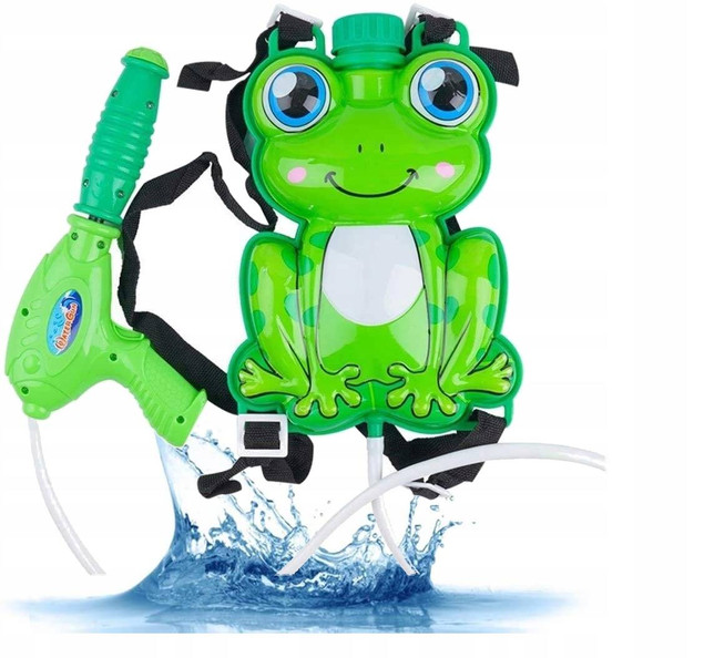 Plecaczek w kształcie żabki, piękna kolorystyka, duża pojemność zbiornika na wodę, a także duża donośność sprawią, że pistolet stanie się doskonałym towarzyszem dziecięcych zabaw. Wystarczy kilkakrotnie przesunąć rączkę pompki by zabawka stała się gotowa do użycia. Odkręcany, duży pojemnik należy napełnić wodą - zapewni wiele minut dobrej zabawy. Zbiornik posiada paski, które można regulować.