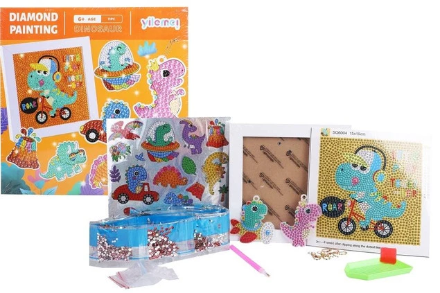 - diamentowy obraz dinozaura na rowerku, który oprawisz w ramkę .