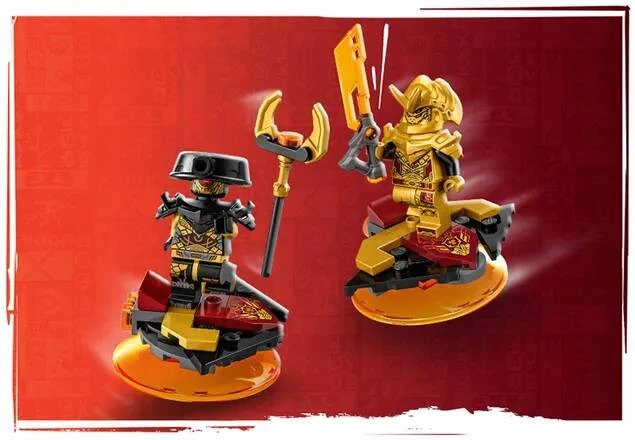 Ten zestaw z samochodem ninja zawiera cztery minifigurki: wojowników ninja, Zane'a i Cole'a, uzbrojonych w dwie katany, komandora obrony imperium, imperialnego łowcę szponiastych oraz droida imperialnego. Komandor ma miecz imperialny, a łowca szponiastych ma elektryczny kostur. Obaj przemieszczają się na fajnych latających deskach. W innych zestawach NINJAGO są dwa elementy mocy niebieskiego smoka, a dzieci mogą zebrać jeszcze cztery w różnych kolorach.