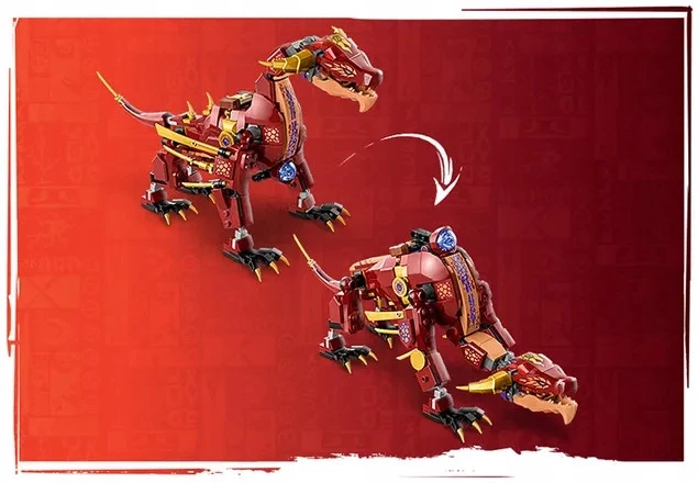 Dzięki zestawowi Lawowy smok zmieniający się w falę ognia (71793) fani ninja w wieku od ośmiu lat mogą odtwarzać swoje ulubione sceny z serialu telewizyjnego NINJAGO® Dragons Rising. Zawiera on niespotykanego dotąd smoka, którym dzieci mogą bawić się na dwa sposoby. W trybie pokojowym stoi majestatycznie, ale po odwróceniu do góry nogami przełącza się w tryb bojowy, który pozwala mu wystrzelić z piersi element mocy fioletowego smoka.