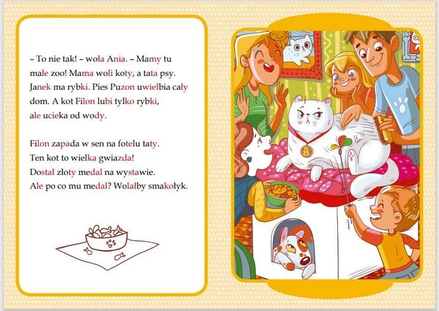 Wyzwanie dla bohatera, który pierwszych czytanek się nie boi! Krótkie historyjki o Kubie i jego rodzinie, oprawione zabawnymi ilustracjami z elementami do kolorowania, pomogą dziecku ćwiczyć umiejętność czytania na poziomie podstawowym. W tekście użyto tylko 23 liter, a słowa podzielono na sylaby, wyróżniając je kolorem – zgodnie z metodą sylabową. Świetna rozgrzewka przed prawdziwą lekturą!