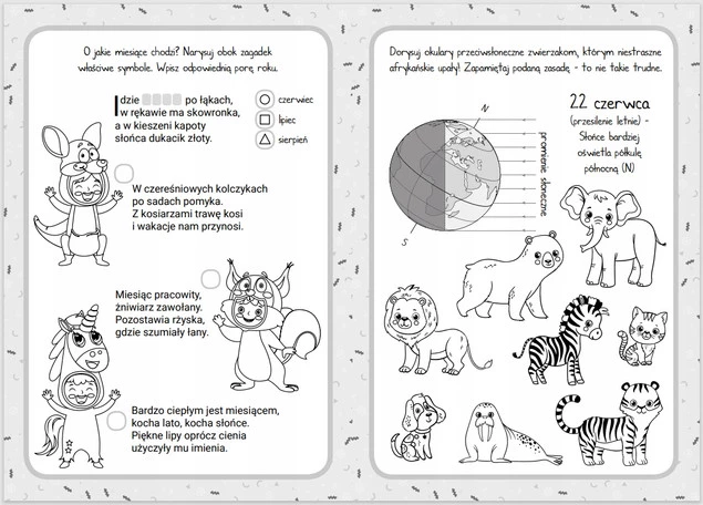 Atrakcyjny kurs superprzyrodnika! Oryginalne kartki z kalendarza, obrazkowe i słowne dopasowywanki, wierszowane zagadki oraz cała gama kreatywnych zabaw pomagają przyswoić arcyważną wiedzę o porach roku i arcyfajne ciekawostki. Są doskonałą gimnastyką dla mózgu, a także świetną przygodą!