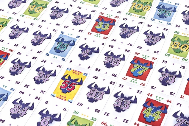 Wszystko idzie gładko, dopóki możemy dołożyć kartę do 1 z 4 rzędów. Problemy zaczynają się, gdy rząd jest pełny albo zagramy kartę, która nigdzie nie pasuje. W obu tych przypadkach musimy wziąć karty ze stołu i dodać je do swojego stosu byków.