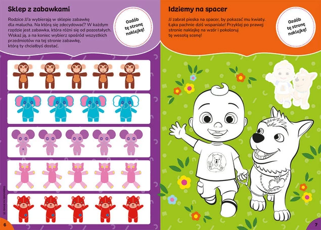 Nowe 100 naklejek to propozycja dla dzieci, które zaczynają dopiero swą przygodę z książkami aktywnościowymi. Zawarte tu łamigłówki są proste i zostały opracowane tak, aby pomóc w kształtowaniu różnych talentów malucha. W książce znalazły się zarówno zadania wymagające spostrzegawczości czy umiejętności liczenia na podstawowym poziomie, jak i ćwiczenia rozwijające kreatywność, zmysł plastyczny i zdolności manualne. Na końcu umieszczono odpowiedzi do wybranych zadań, dzięki czemu w zabawie z łamigłówkami rodzica może zastąpić na przykład starsze rodzeństwo. Uzupełnieniem łamigłówek są atrakcyjne naklejki – część przyda się do rozwiązywania zadań, a część można nakleić w dowolnym miejscu, dekorując w ten sposób zeszyt, piórnik czy kartkę urodzinową dla bliskiej osoby. Towarzystwo ulubionych bohaterów znanych z uwielbianej przez dzieci kreskówki Cocomelon zachęci do zabawy, a gdy wszystkie łamigłówki zostaną już rozwiązane, warto sięgnąć po pozostałe książki z serii. Czekają w nich bohaterowie innych seriali dla najmłodszych!