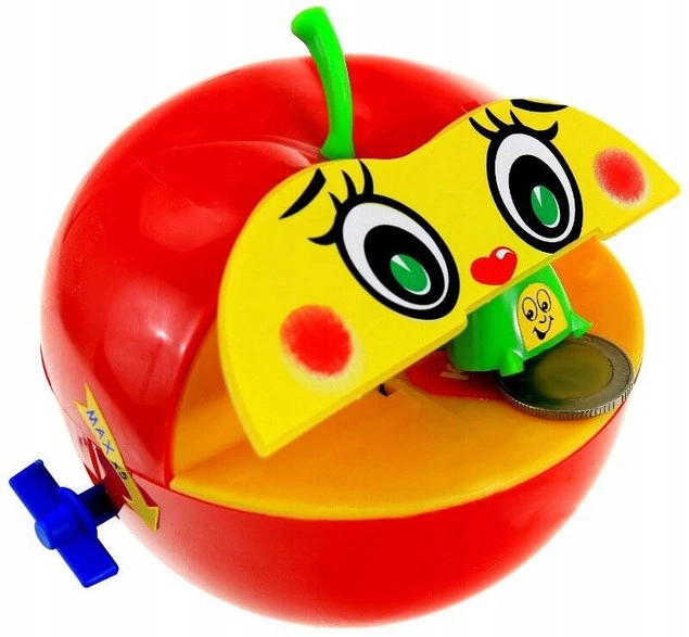 Skarbonka Bankowe Jabłuszko Z Robakiem Nakręcana Zjada Monety MIX 3+ Marek