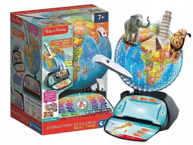 - ➔ Interaktywny Eduglobus Digital (Clementoni) to nowoczesne narzędzie edukacyjne, które zamienia naukę geografii w fascynującą przygodę. Dzięki połączeniu klasycznego globusa z technologią cyfrową i dedykowaną aplikacją, dzieci mogą odkrywać świat w sposó