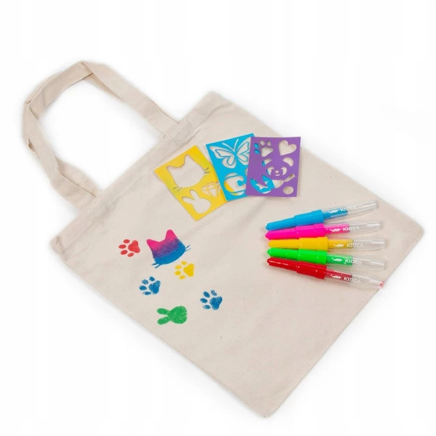 Markery do tkanin w sprayu „Zwierzaki” z szablonami Kidea to kreatywny zestaw, który pozwala w prosty i zabawny sposób ozdabiać koszulki, buty, torby i inne materiały. W opakowaniu znajduje się pięć intensywnych kolorów (żółty, różowy, czerwony, niebieski, zielony) oraz trzy arkusze z szablonami, dzięki którym można tworzyć wyjątkowe i niepowtarzalne wzory.