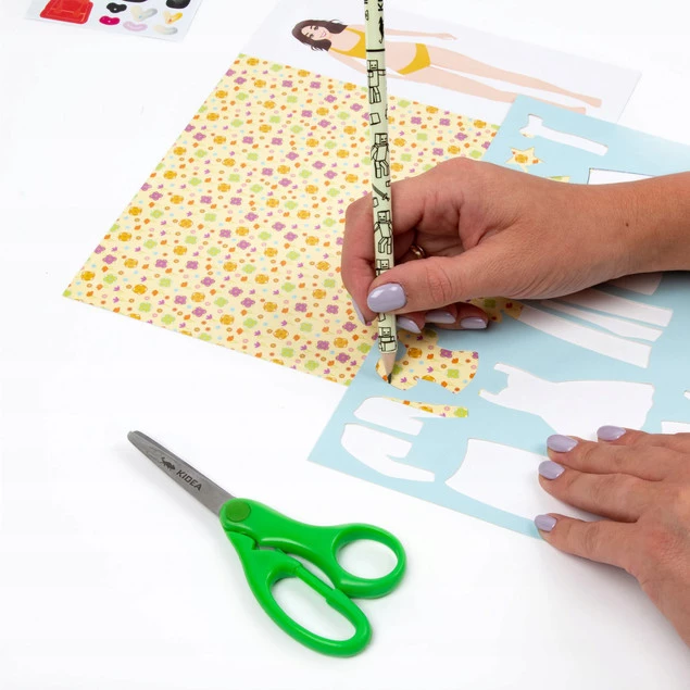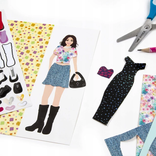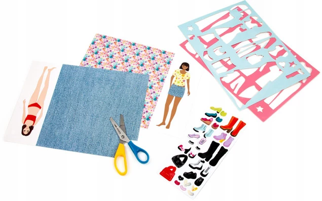 Projektantka mody od Kidea to kreatywna zabawa zawierająca aż 10 arkuszy materiału, 10 modelek, dwa arkusze z szablonami ubrań oraz 30 naklejek z dodatkami. Wystarczy odrysować wybrany element ubioru na arkuszu z "tkaniną", wyciąć go i przykleić na modelkę, a następnie dobrać odpowiednie dodatki. Projektantka to kreatywny zestaw, który pozwala na zabawę modą, pobudza wyobraźnię i wyzwala pasję. To idealny prezent dla małej fashionistki. Wszystkie elementy zestawu zostały umieszczone w opakowaniu na blistrze.