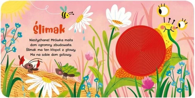 Barwne i odpowiednie dla dziecka ilustracje, ciekawa tematyka oraz zabawne wierszyki o bohaterach książeczki połączone z zabawą w dotykanie silikonowych elementów.