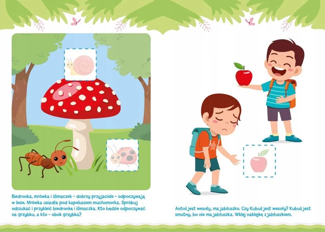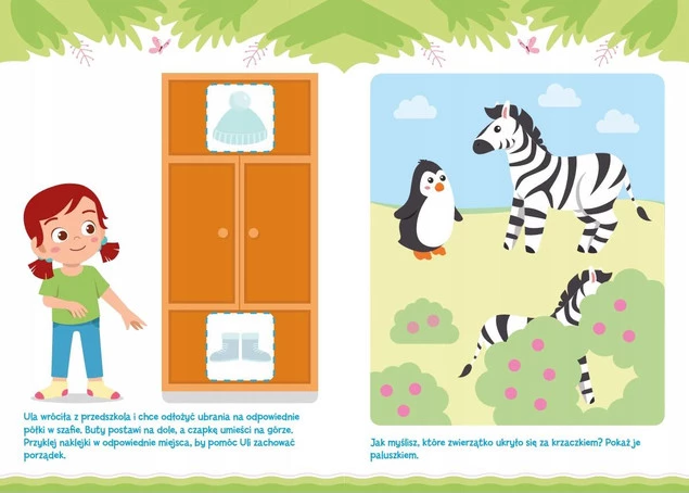 Na lekcjach dla młodszych dzieci porównujemy kolorowe obrazki, łączymy pary i tworzymy zbiory. Na zajęciach dla starszaków łamiemy głowy, by pokonywać labirynty, rysować według wzoru i liczyć elementy. Wszyscy świetnie się bawimy, kiedy poznajemy wesołe postacie, kolorujemy obrazki i… przyklejamy superowe naklejki!