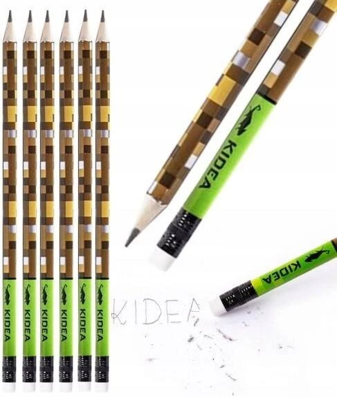 6x Ołówek Szkolny Trójkątny Z Gumką MINECRAFT HB Kidea