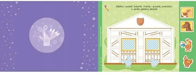 Książeczka dla kreatywnego 5-latka pełna ciekawych zadań aktywizujących. Dorosły pomaga wycinać obrazki, a dziecko rysuje po liniach przerywanych, koloruje kredkami, maluje pędzlem lub paluszkami, wykleja i wskazuje odpowiedzi.