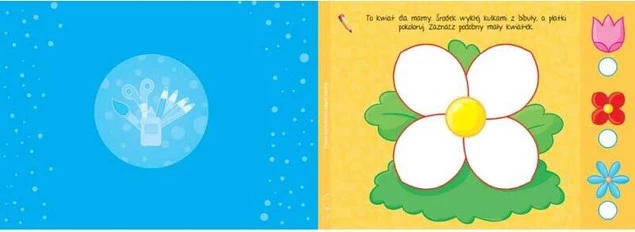 Książeczka dla kreatywnego 2-latka pełna ciekawych zadań aktywizujących. Dorosły pomaga wycinać obrazki, a dziecko rysuje po liniach przerywanych, koloruje kredkami, maluje pędzlem lub paluszkami, wykleja i wskazuje odpowiedzi.