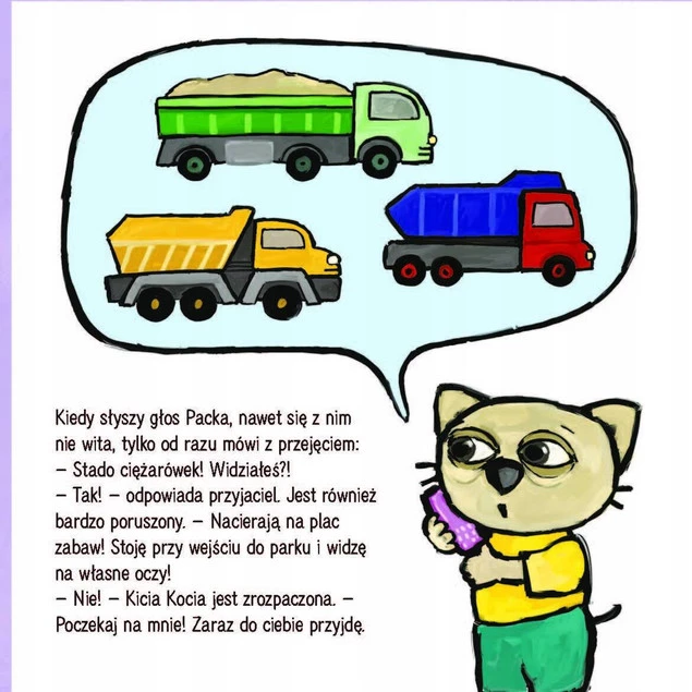Pewnego dnia Kicia Kocia słyszy za oknem hałas – pracują ciężkie maszyny. Czy niszczą plac zabaw?