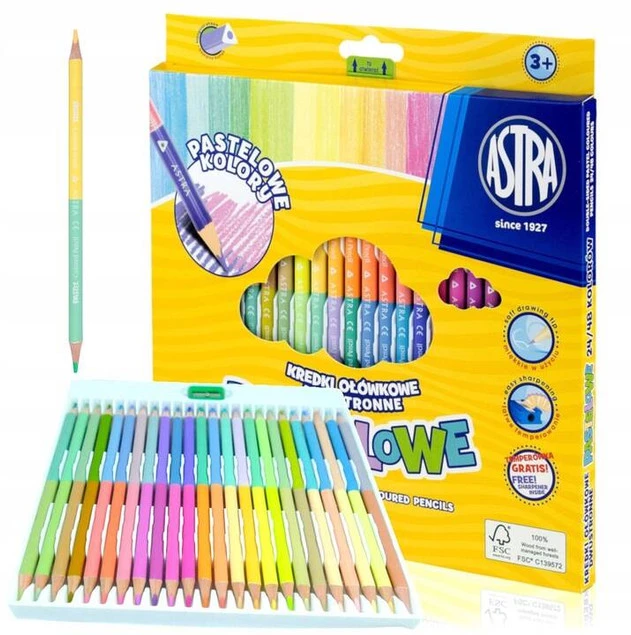 - Astra kredki ołówkowe dwustronne pastelowe 24 sztuki 48 kolorów
