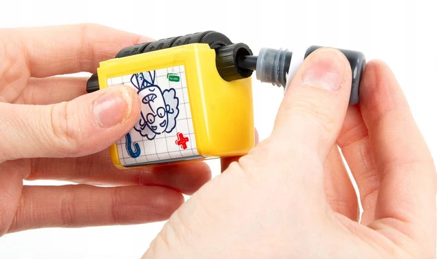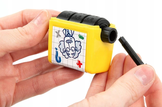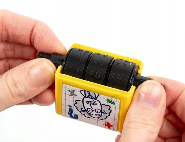 - Ten wyjątkowy stempelek w formie rollera pozwala stworzyć wiele różnych kombinacji działań matematycznych – wystarczy zmienić ustawienie liczb za pomocą pokrętła.