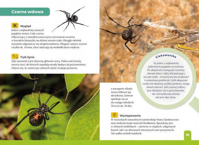 Dzięki atlasowi poznasz m.in. jadowitego karakurta, sprytną mrówczynkę czy przepięknie barwnego pająka pawiego.