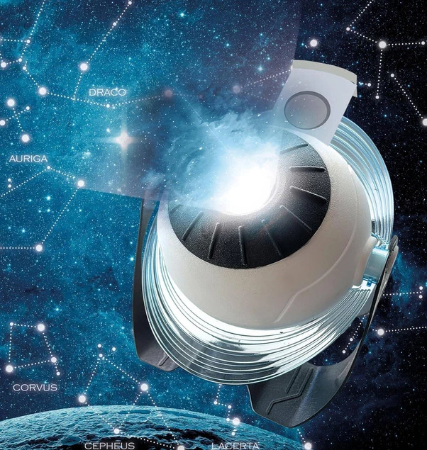 Górny pierścień pomoże w skupieniu obrazu w wysokiej rozdzielczości, a dzięki wyjątkowo jasnej diodzie LED projekcja będzie naprawdę ekscytująca... to będzie jak wprowadzenie wszechświata do Twojego domu!